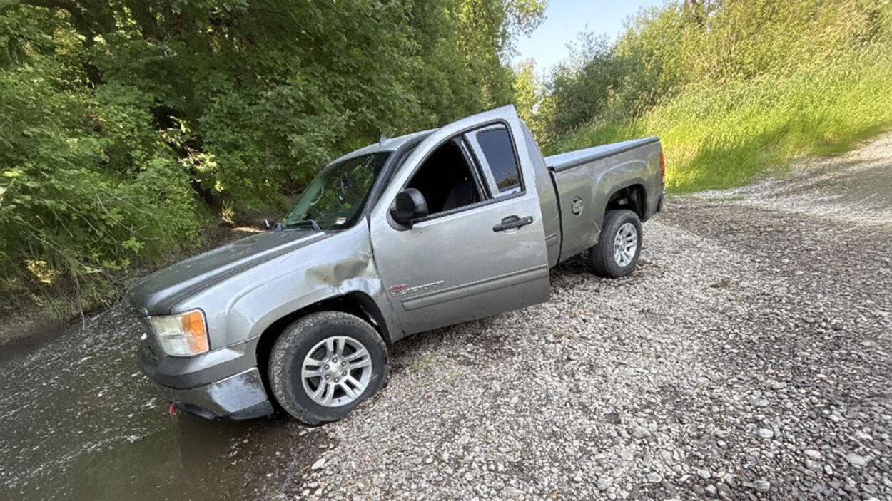 Pickup truck stuck in river bed