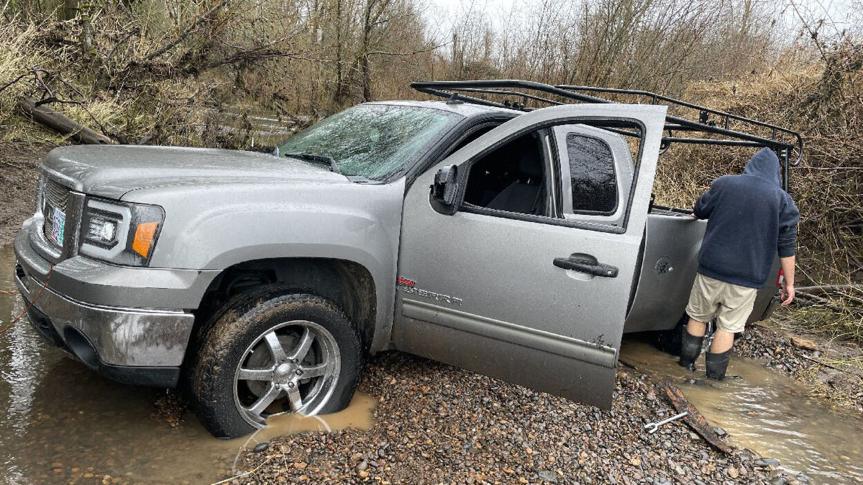 Wednesday, February 5th, 2025, at 6:30 p.m. (PT), we received a request for help with an offroad recovery in Parkdale, Oregon. The requester, Albert Medina, submitted the following information: “I have a GMC Sierra stuck