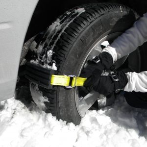 When venturing into snowy terrain, consider carrying this set of traction grabbers. Constructed from robust material, they offer impressive durability. With a quick installation time of just five minutes, these grabbers can assist you in regaining traction and getting back on the road if the snow has caused you to lose control.